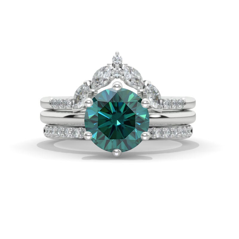 2 Carat Round Brilliant Cut GreenMoissanite Engagement Ring, 14K White Gold Eternity Rings Set