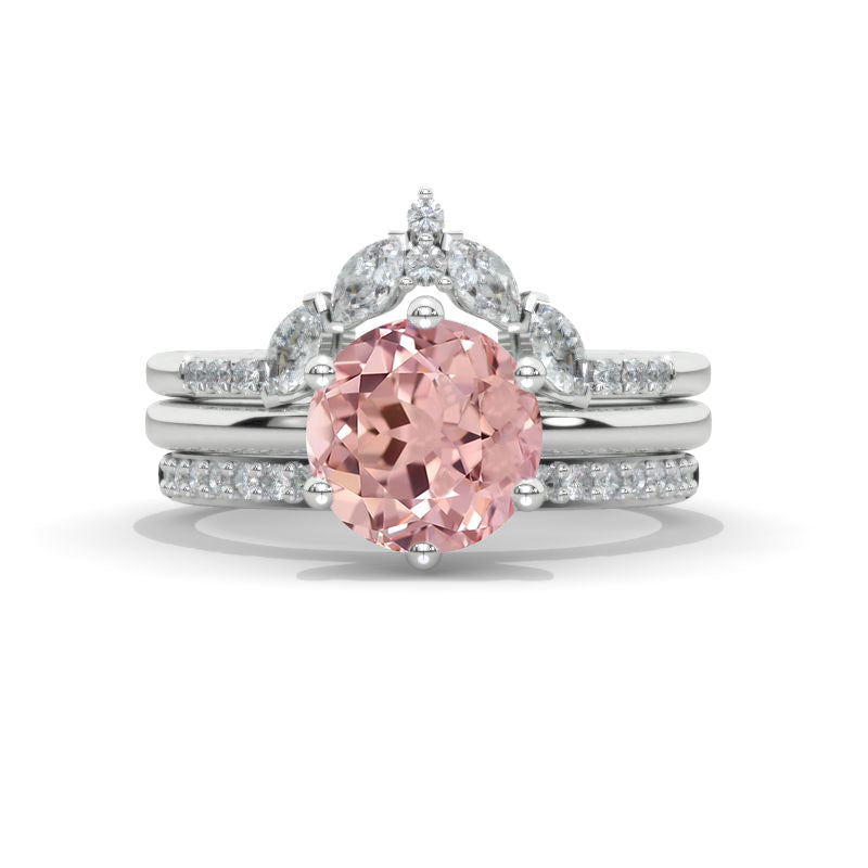 2 Carat Round Brilliant Cut Peach Sapphire Engagement Ring, 14K White Gold Eternity Rings Set Model 712-8
