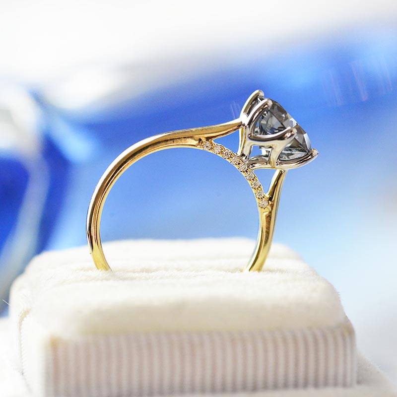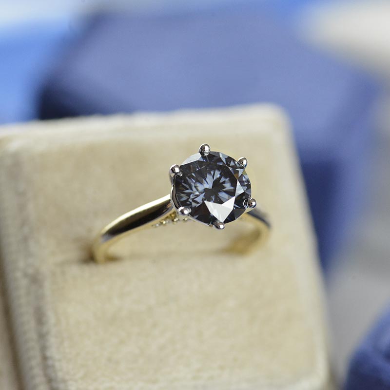 2 Carat Dark Gray Blue Moissanite Six Prongs Engagement Ring