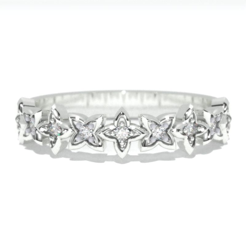 The default design option features 0.3 CTWÂ Moissanite D-Colorless, VVS1-Clarity, VG-Cut,