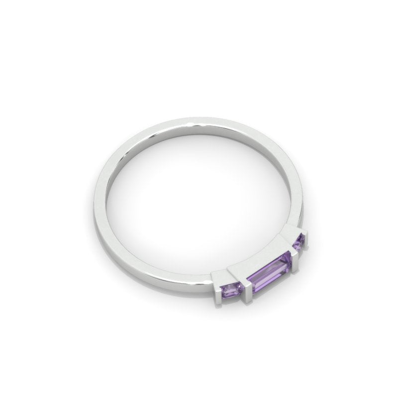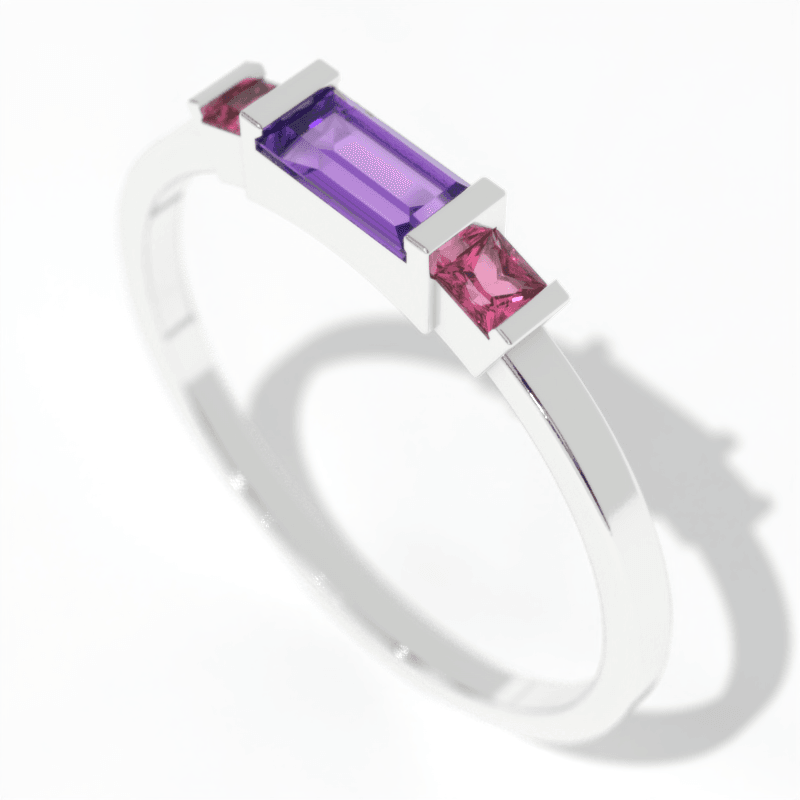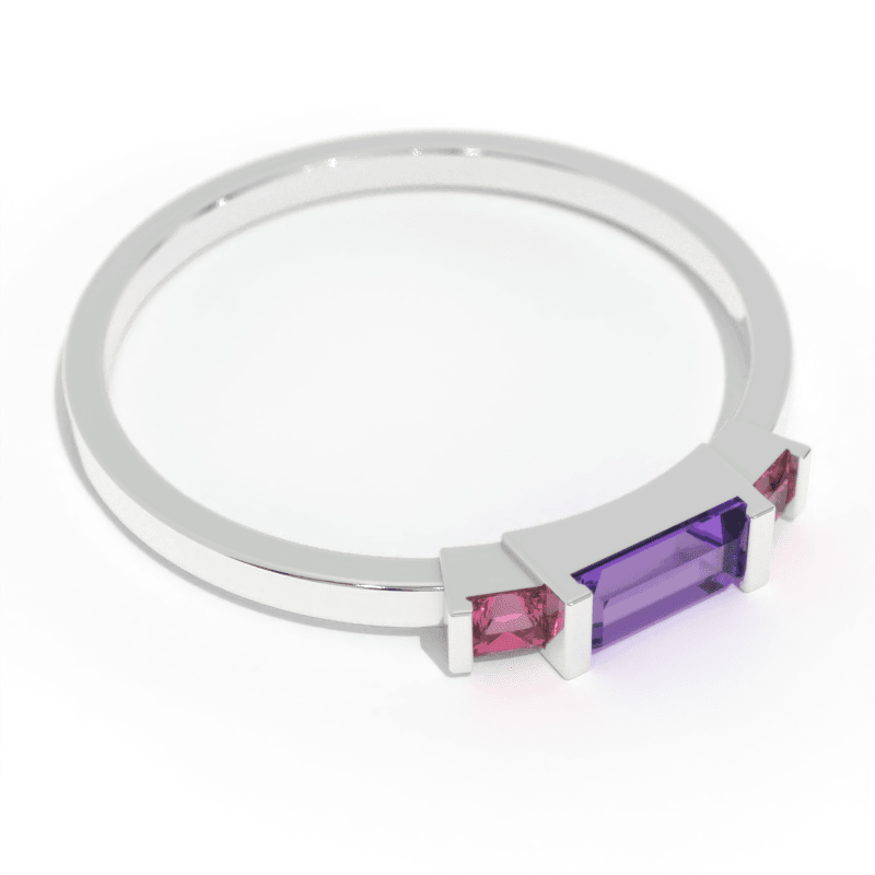 The default design option features 5x2.5mm Created Amethyst Baguette Stones and Approximately 0.1+ CTW Garnet Accent Stones