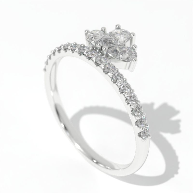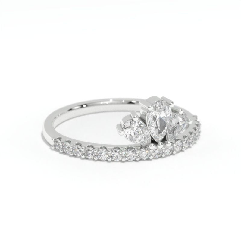 The default design option features Approximately 0.4+ CTW LAB-Grown Diamond Pear Cut D-Colorless, VVS1-Clarity, VG-Cut, Ex-Polish, VG-Symmetry Center Stone (Colorless)