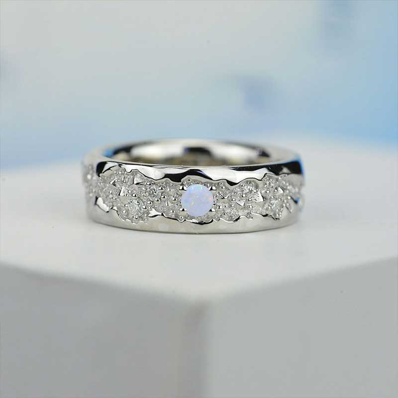 0.6 CTW White Opal Men's Ring 14K White Gold Ring - Giliarto