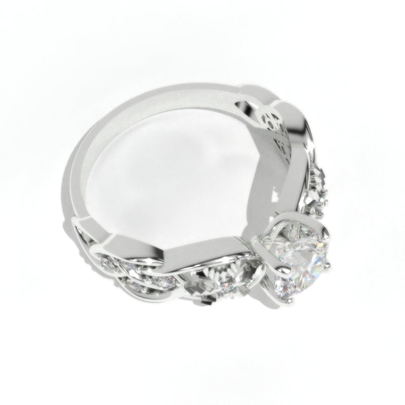 This design is another beautiful variation of a lattice element ring with one centre stone piece and beautiful accent stones.