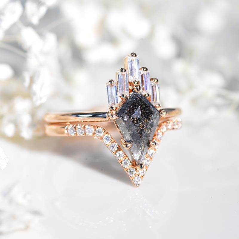 Engagement Ring: 0.89 CT, 11.0 X 6.8 MM | Natural Diamond | Salt And Pepper Diamond | Kite Cut Diamond Engagement:
