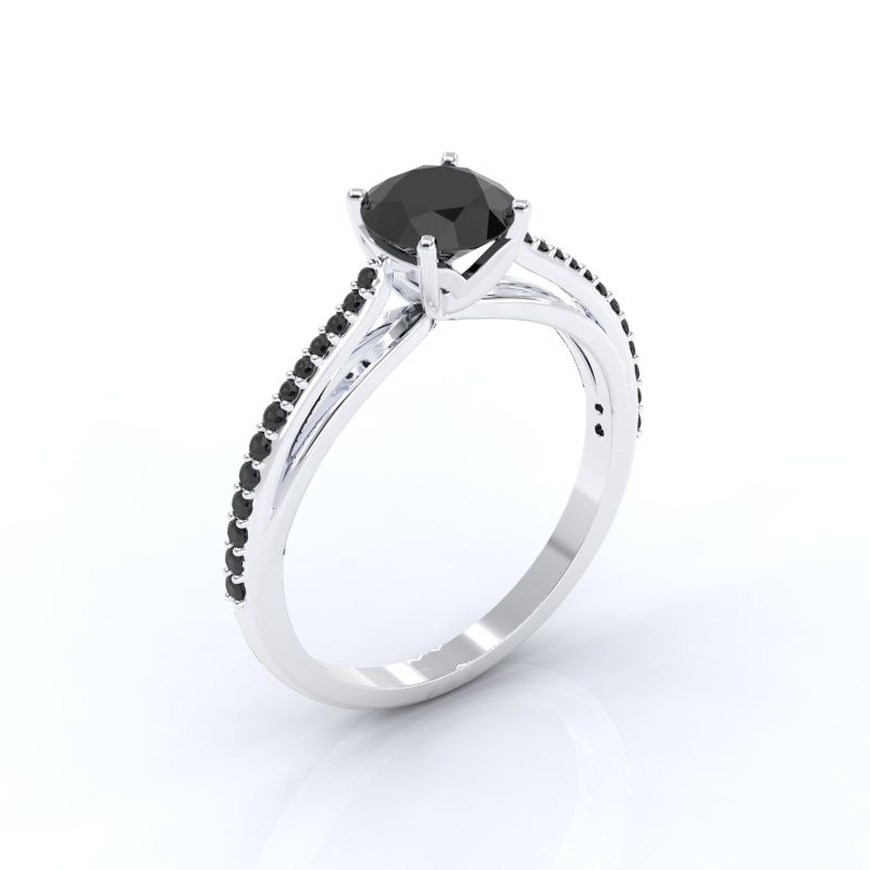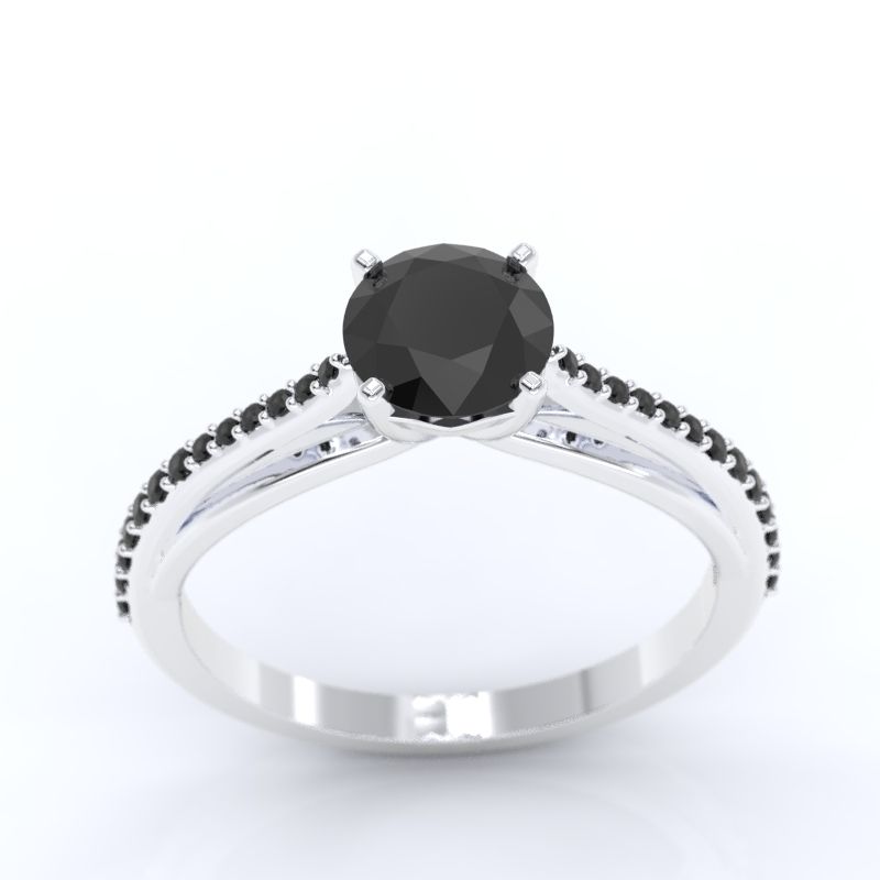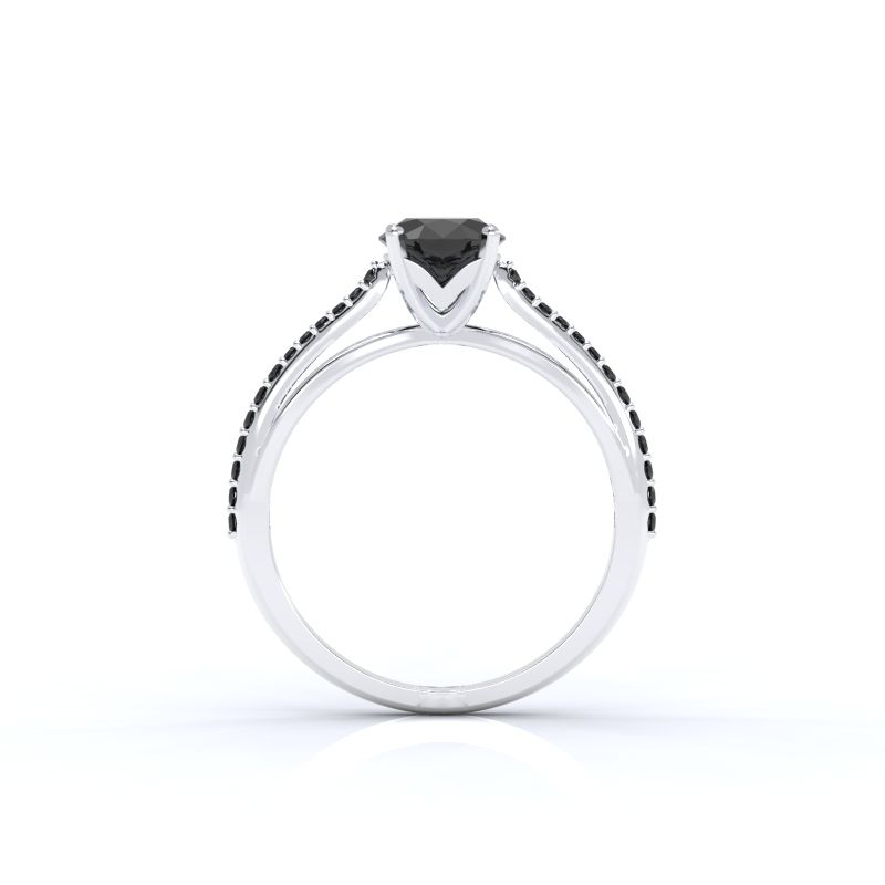 1.0 Carat Black Moissanite and Diamond Engagement Ring 14K White Gold - Giliarto