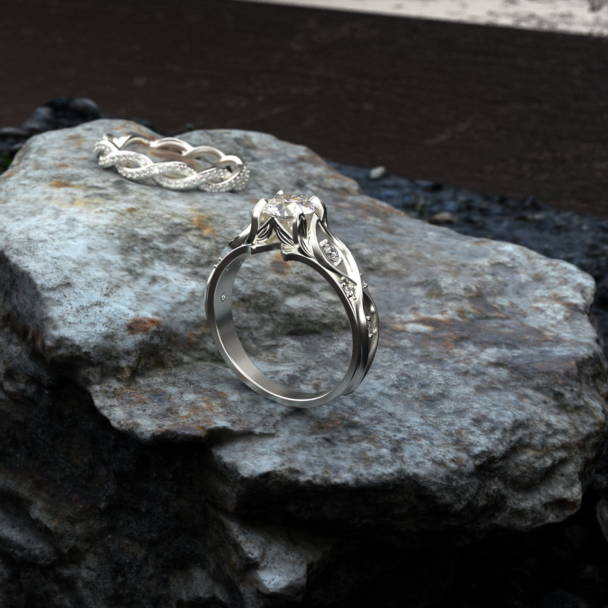 This piece has been inspired by natural forms of majestic glaciers, intricate elements of northern folklore and frozen creeks sparkling in the sun. All these elements woven together hold the main symbol of the north: stone clear as ice and bright like snow.