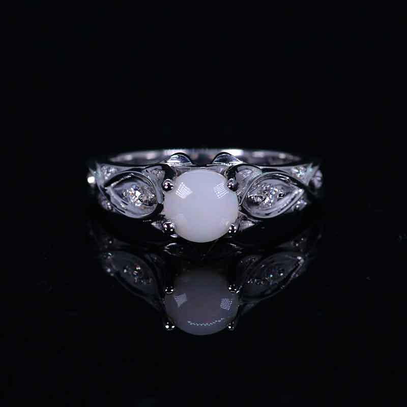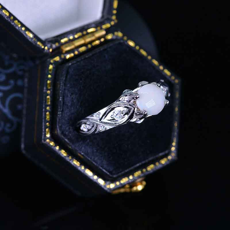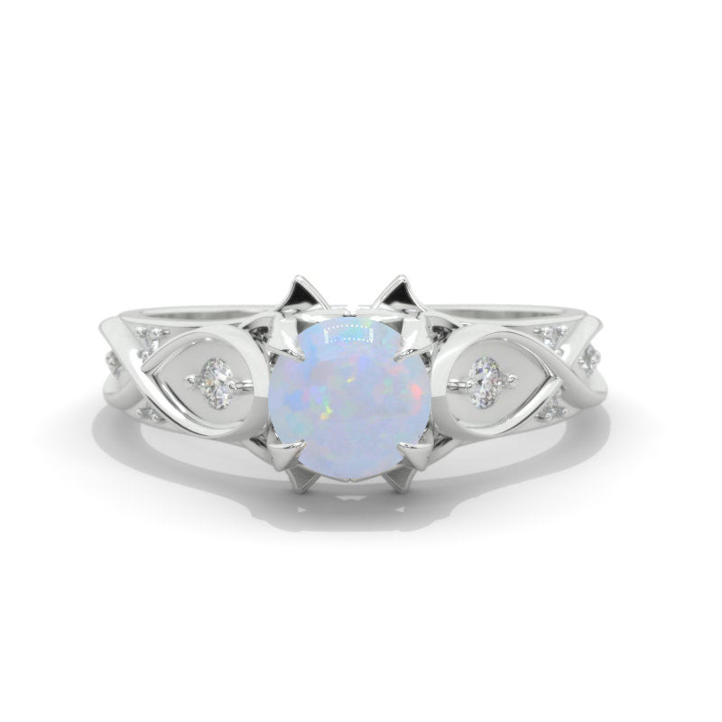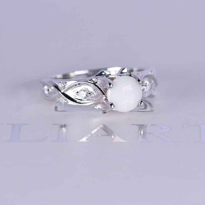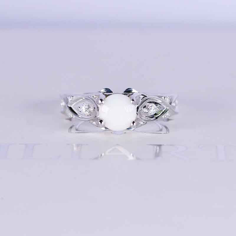 1.0 Carat Genuine Natural White Opal Engagement Ring 14K White Gold