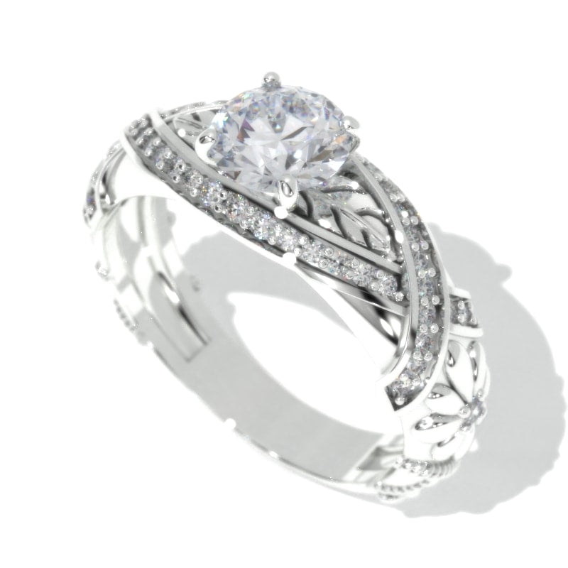 set with D- Colorless Moissanite Accents 0.35 TCW in 14K White Gold.