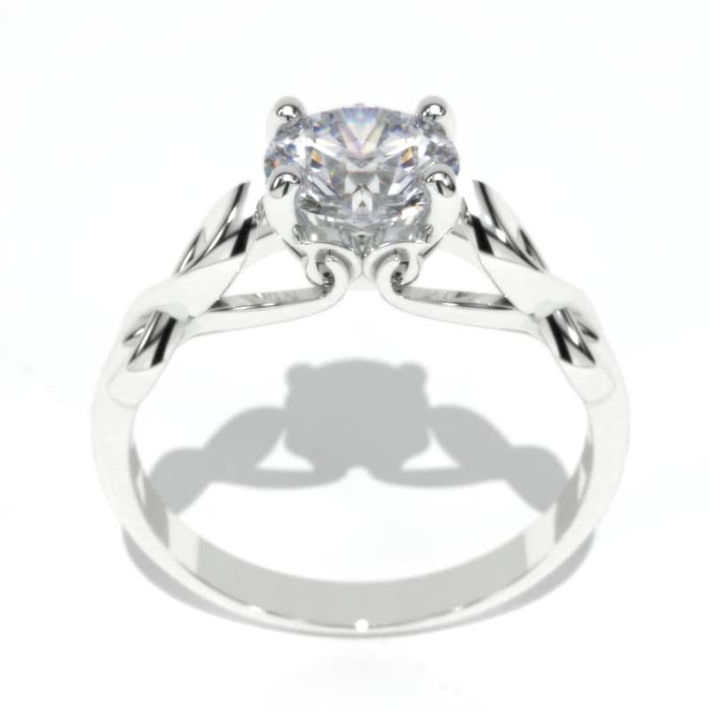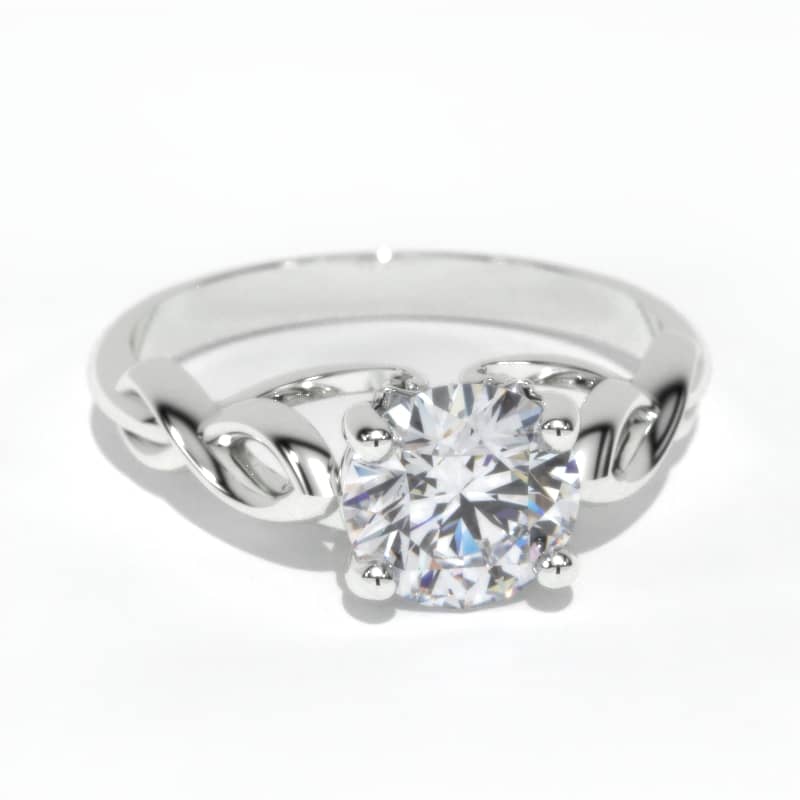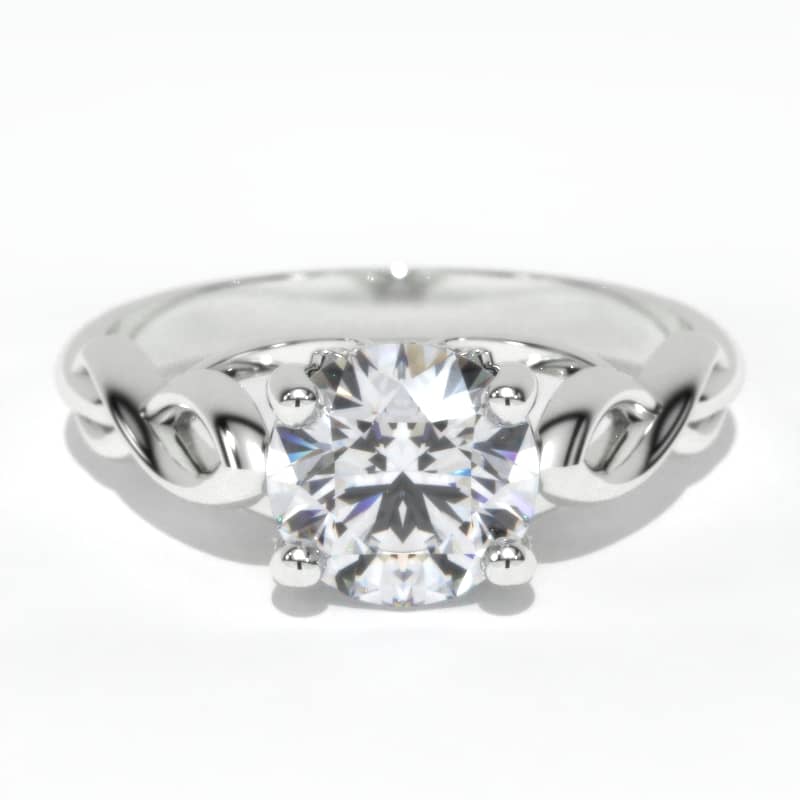 1.0 Carat Giliarto Moissanite (Round 6 mm, D-Colorless, VVS1-Clarity, Ex-Cut, Ex-Polish, VG-Symmetry)  in 14K White Gold Ring.Â