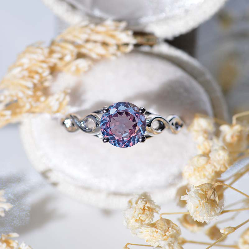 1.0 Carat Portuguese Cut Alexandrite Lattice White Gold Engagement Rin - Giliarto