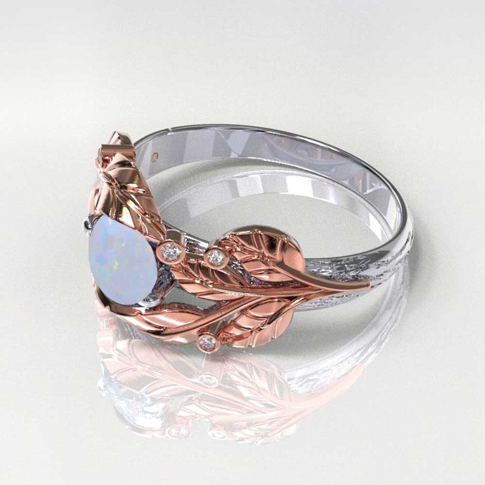 1.0 Carat Natural White Opal Center Stone ( 6mm Round, VVS1-Clarity, Ex-Cut, Ex-Polish, VG-Symmetry) and 6 Genuine Ruby Accents (0.03 CTW) in 14K Rose and White Gold.