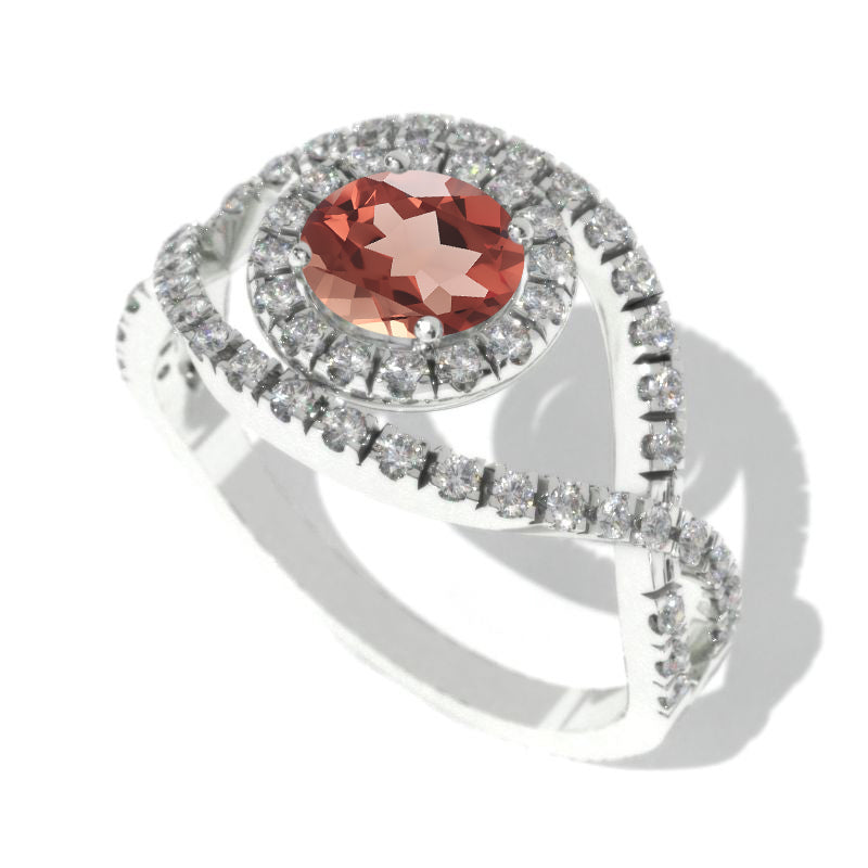 This one of a kind ring features beautiful lattice design which embeds gorgeous jewels of your choice and elegantly twists into the main centre stone.