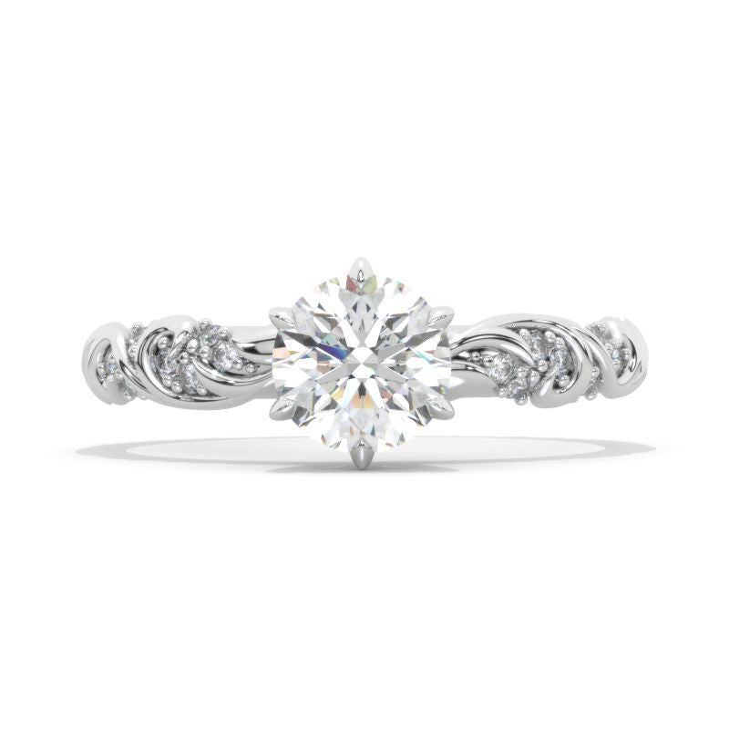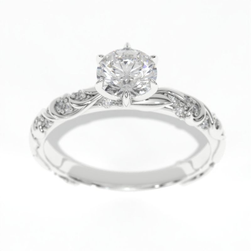 The default design option features 6mm Round Giliarto Moissanite Center Stone:  D-Colorless, VVS1-Clarity and 0.1 CTW D-Colorless, VVS1-Clarity, VG-Cut, Ex-Polish, VG-Symmetry Accent Stones ( Colorless)