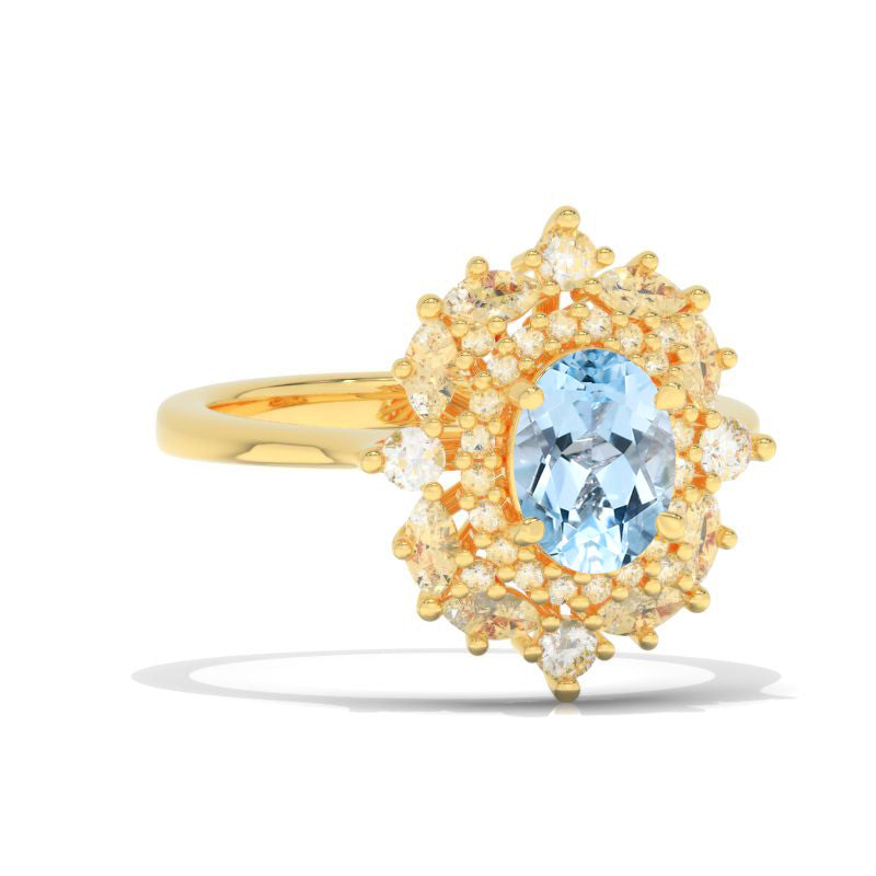 1.5 Carat Genuine Aquamarine Oval 8x6mm AAA+ Quality, VG-Cut, Ex-Polish, VG-Symmetry Center Stone.