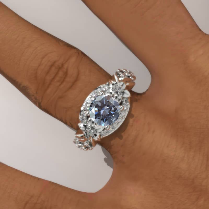 1.5 Carat Gray Moissanite Center Stone (Round 7mm, Gray-Color, VVS1-Clarity, Ex-Cut, Ex-Polish, VG-Symmetry) and