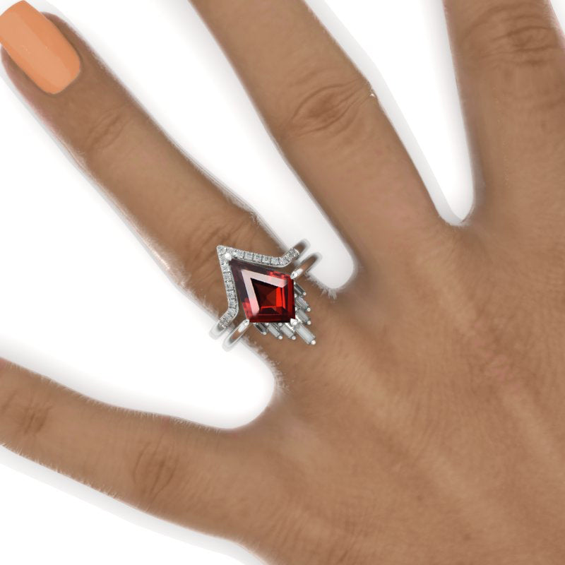 1.5 Carat Kite Ruby Halo 14K White Gold Engagement Ring, Eternity Ring Set
