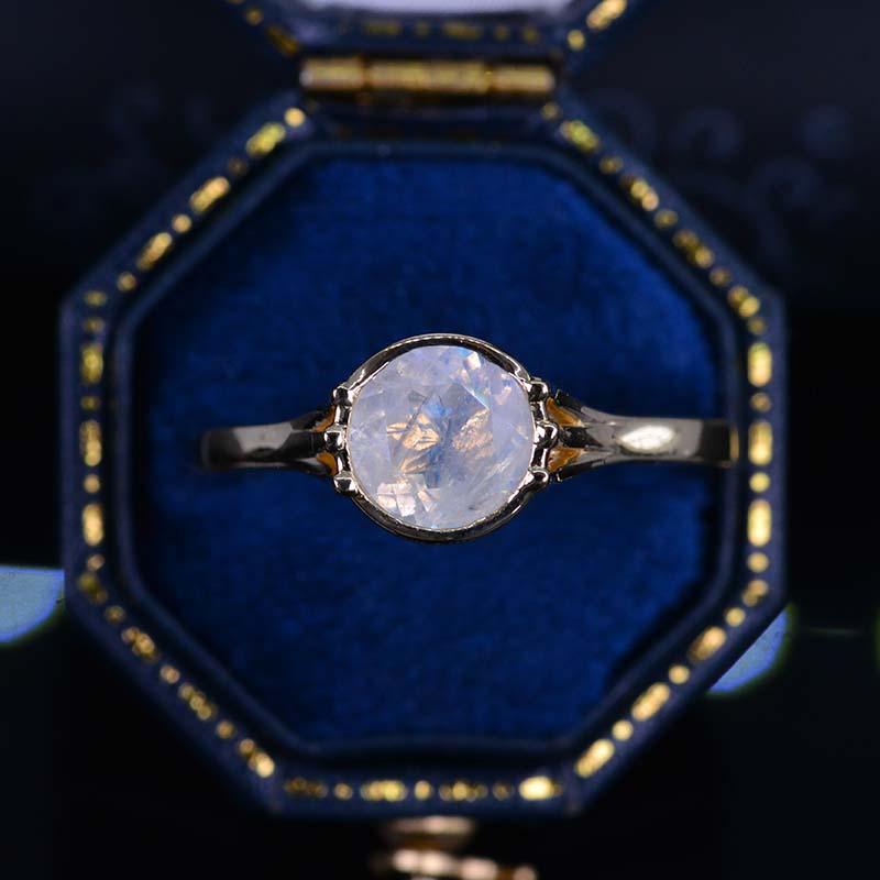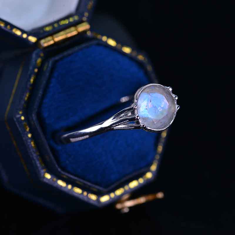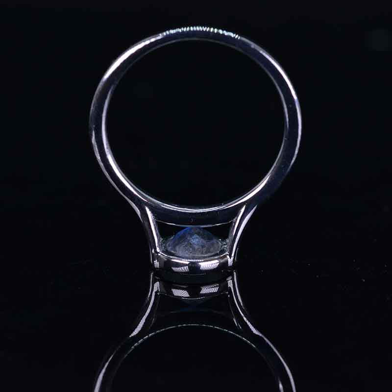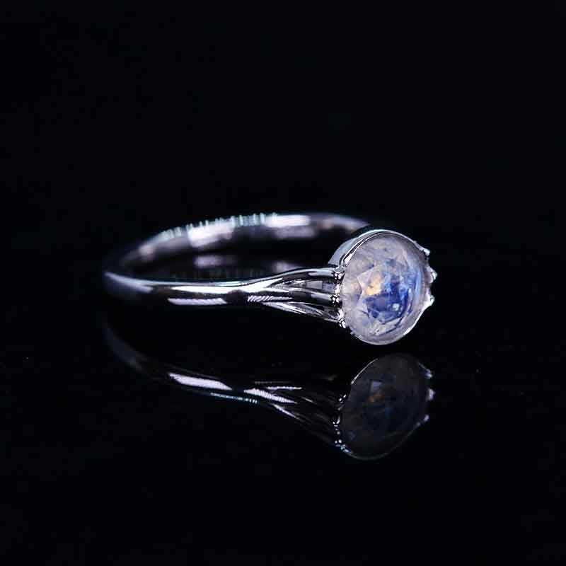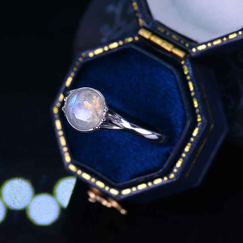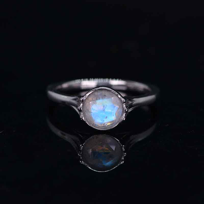1.5 Carat Moonstone Center Stone (Round 7mm, Ex-Cut, Ex-Polish, VG-Symmetry) with 14K White Gold.
