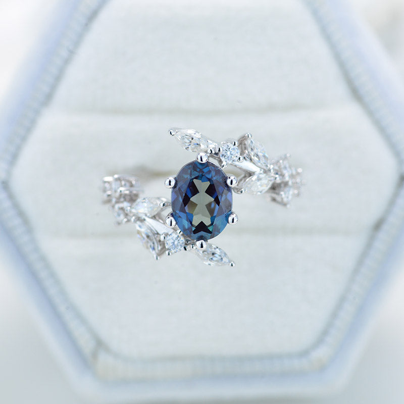 1.5 Carat Oval Alexandrite Floral 14K White Gold Engagement Ring - Giliarto