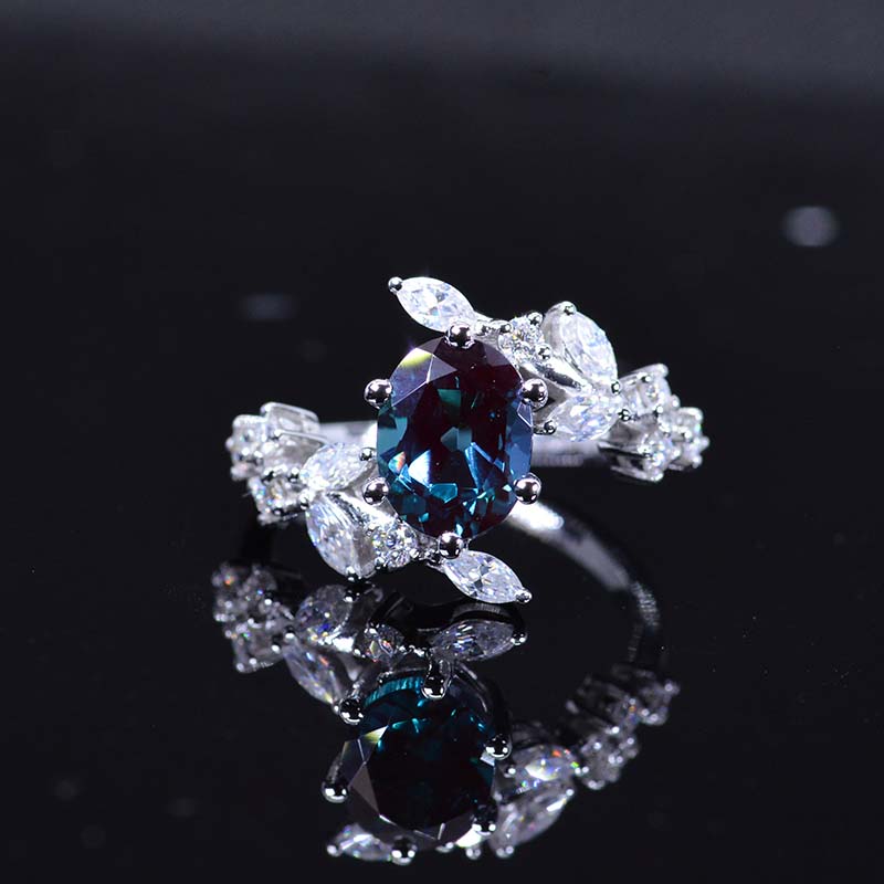 Engagement : 1.5 Carat Oval 8x6mm Ethically Lab-Grown Alexandrite  VVS1-Clarity, VG-Cut, Ex-Polish, VG-Symmetry Center Stone with 38 Colorless 1.5 CTW Moissanite
