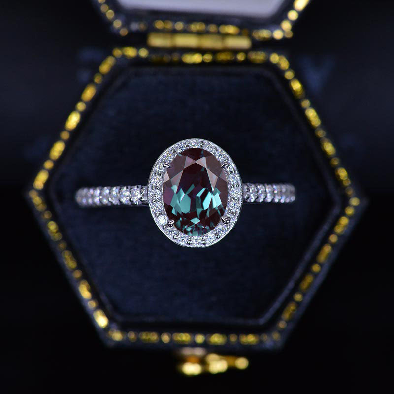 1.5 Carat Oval Alexandrite Halo Engagement Ring - Giliarto