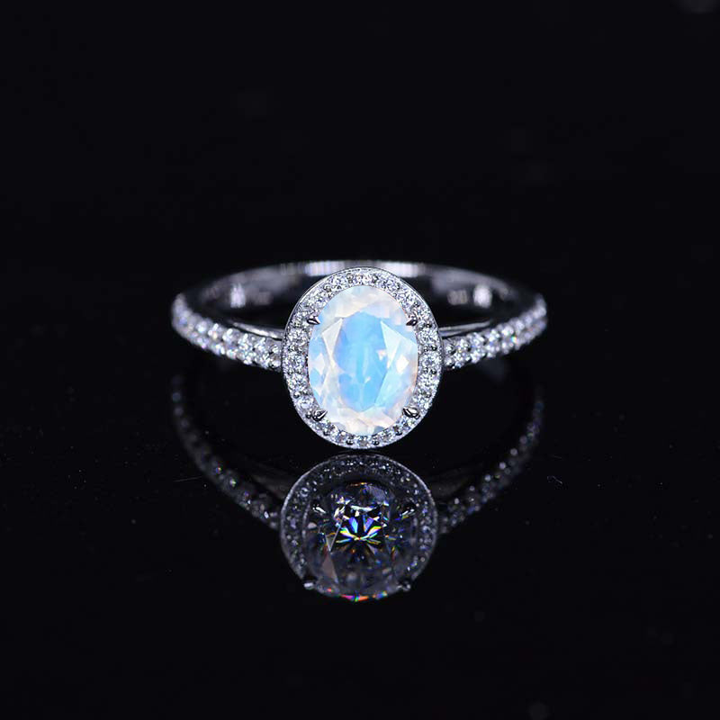1.5 Carat Oval Genuine Moonstone Halo Engagement Ring