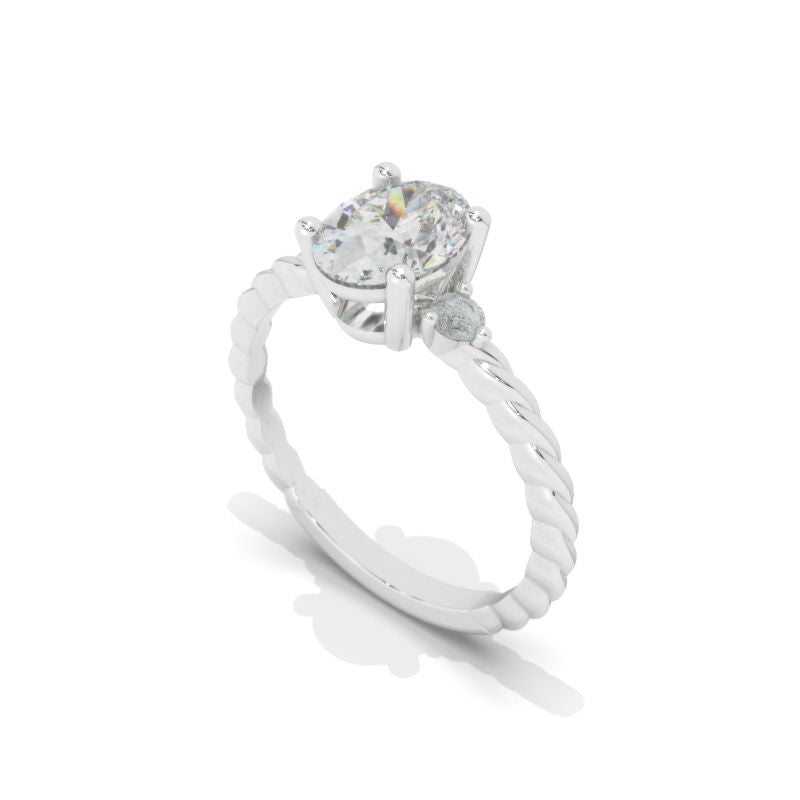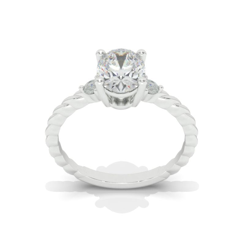 Approximately 1.5+ Carat   LAB-Grown Diamond Stones (Oval 8x6 mm, D-Colorless, VVS-Clarity, Ex-Cut, Ex-Polish, VG-Symmetry) and 0.2 CTW Accent Stones in 14K White Gold.
