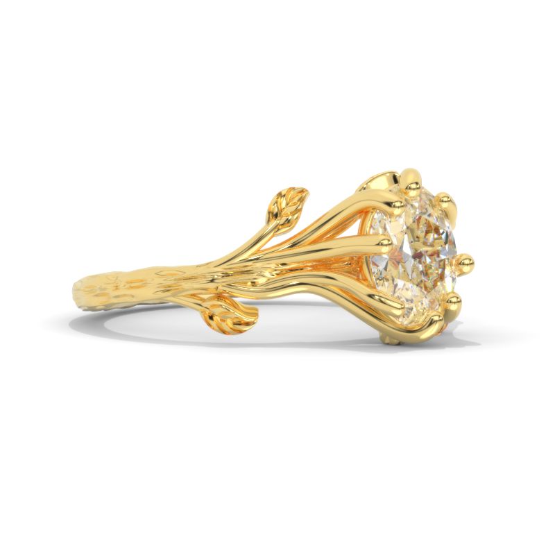 1.5 Carat Oval LAB-Grown Diamond Twig Organic Shaped 14K Gold Engageme - Giliarto