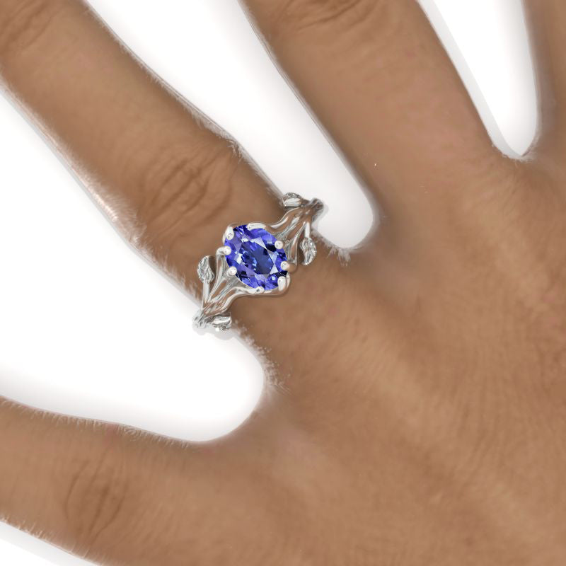 1.5 Carat Oval Natural Genuine Tanzanite Twig Organic Shaped 14K Gold Engagement Promissory Ring