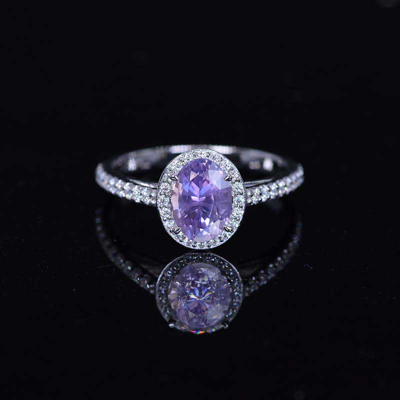 1.5 Carat Oval Purple Sapphire Halo Engagement Ring