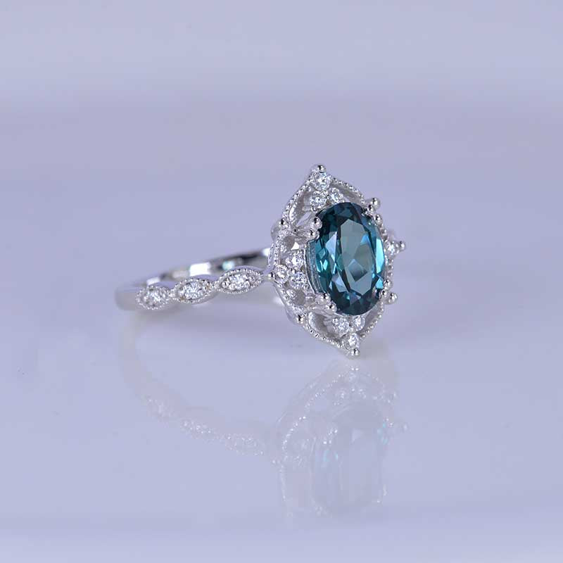 1.5 Carat Oval Teal Sapphire Halo Vintage Engagement Ring