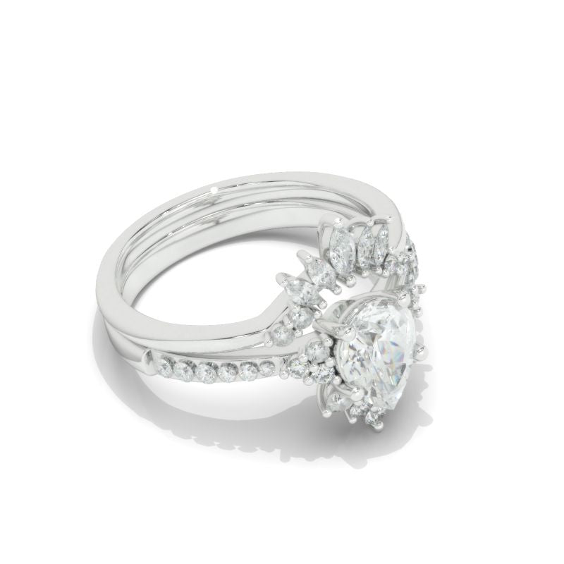 (D-Colorless, VVS1-Clarity) Accent Stones 14K White Gold Ring Set.