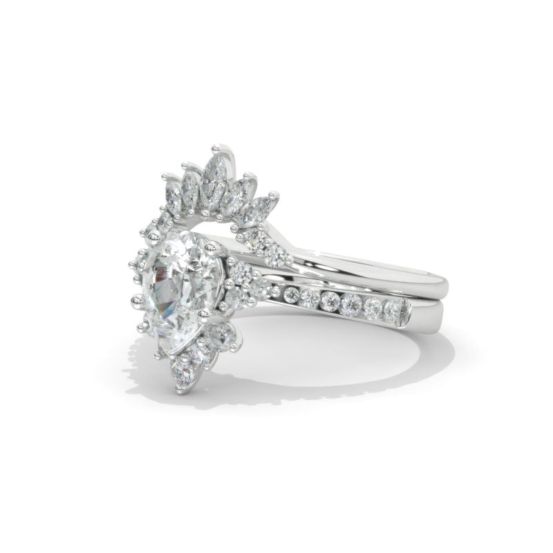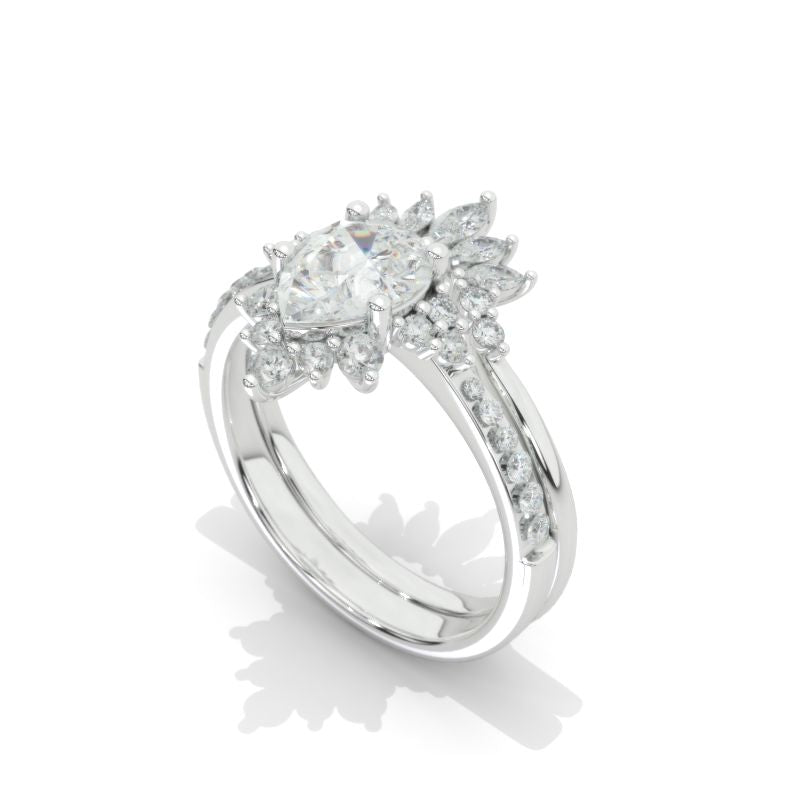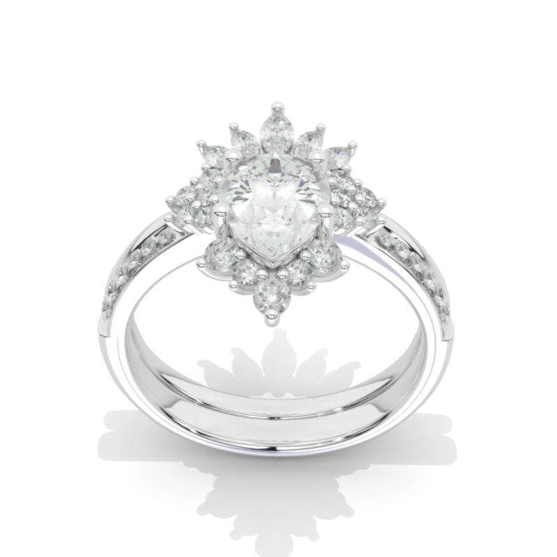 Engagement Ring: Approximately 1.5+ Carat LAB-Grown Diamond Pear 8x5mm D-Colorless, VVS1-Clarity, VG-Cut, Ex-Polish, VG-Symmetry Center Stone with 124 Colorless