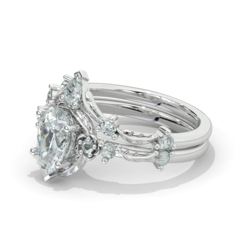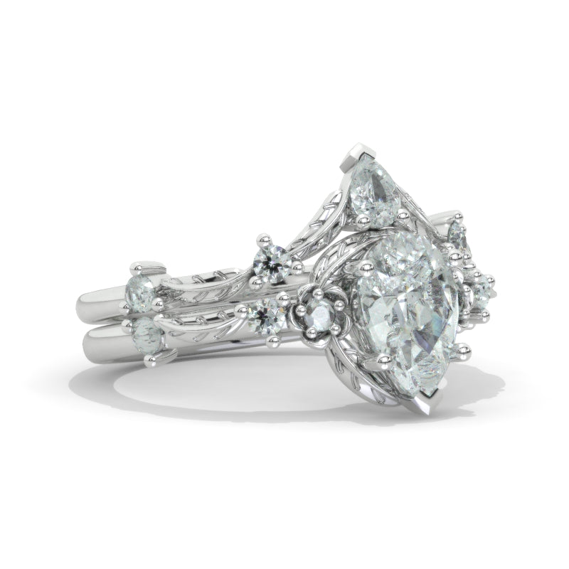 Engagement Ring : Carat LAB-Grown Diamond Pear Shape 9x7mm D-Colorless, VVS1-Clarity, VG-Cut, Ex-Polish, VG-Symmetry Center Stone with Colorless Approximately 0.2+ CTW LAB-Grown Diamond