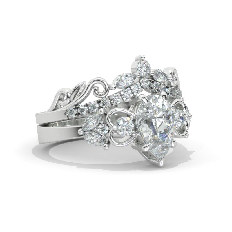 Engagement Ring : Approximately 1.5+ Carat LAB-Grown Diamond Pear 9x6mm D-Colorless, VVS1-Clarity, VG-Cut, Ex-Polish, VG-Symmetry Center Stone with 124 Colorless