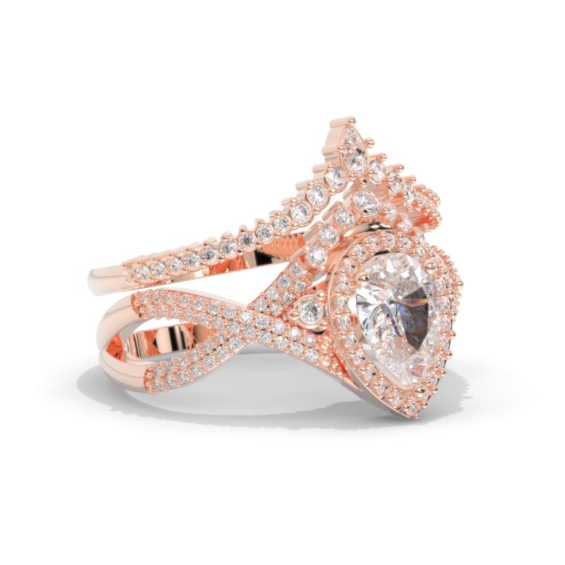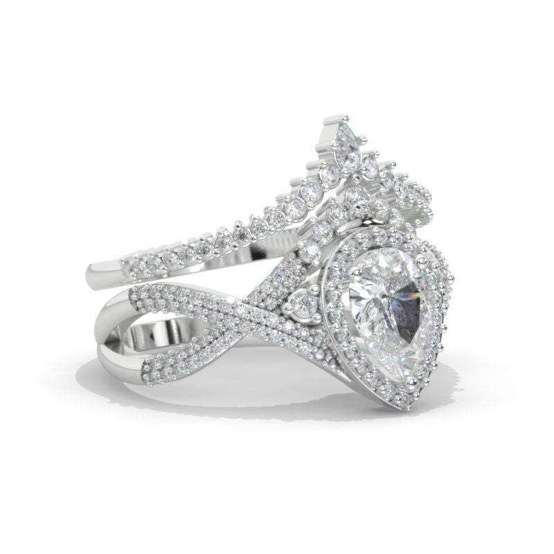 Engagement Ring : 1.5 Carat Giliarto Moissanite Pear 8x6mm D-Colorless, VVS1-Clarity, VG-Cut, Ex-Polish, VG-Symmetry Center Stone with 124 Colorless
