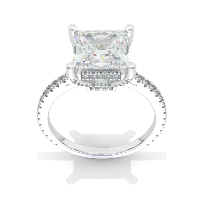 1.5 Carat Princess Cut LAB-Grown Diamond Hidden Halo Gold Engagement Ring Model 513-6x6