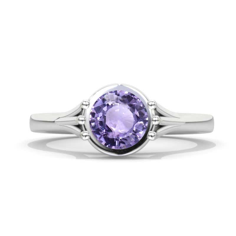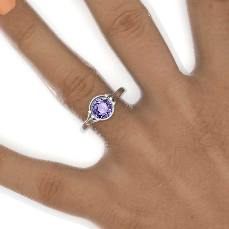 1.5 Carat Ethically LAB-Grown Purple Sapphire Center Stone (Round 7mm, VVS1-Clarity, Ex-Cut, Ex-Polish, VG-Symmetry) with 14K White Gold.