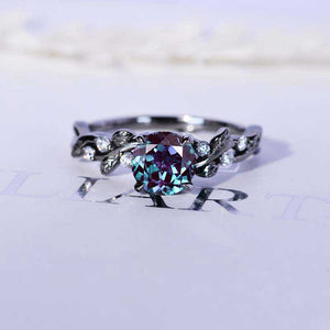 1.5 Carat Round Brilliant Cut Alexandrite Floral Black Gold Engagement - Giliarto