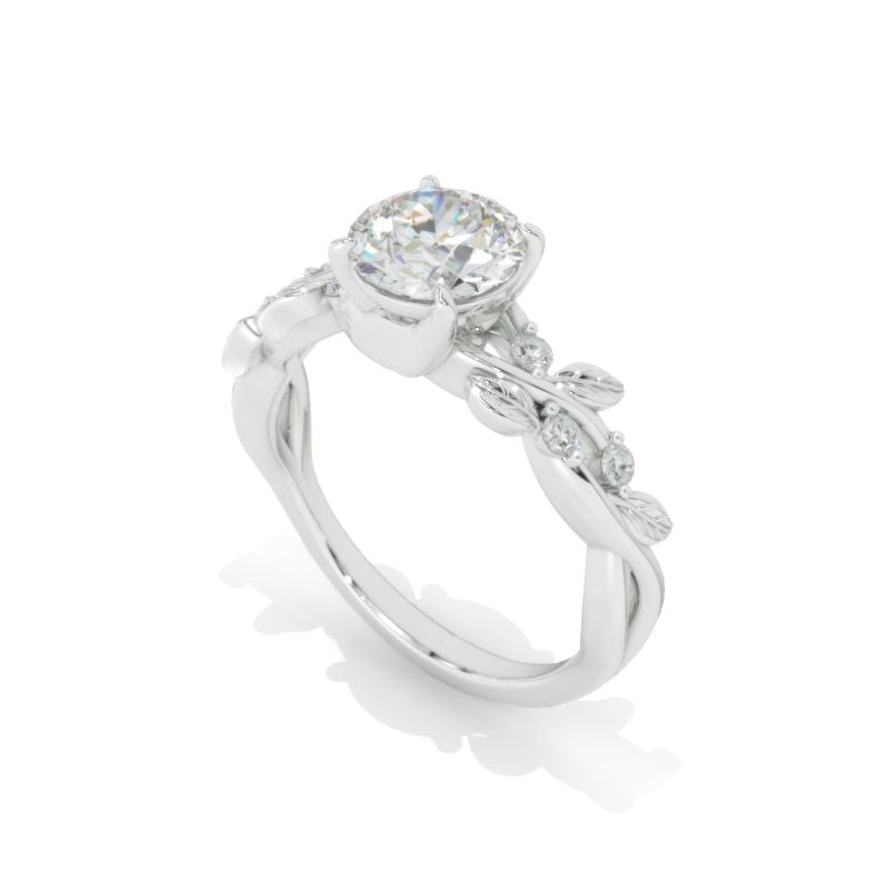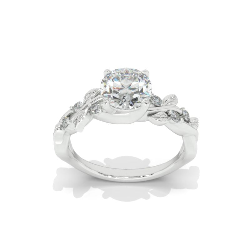 The default design option features approximately 1.5+ Carat Round Cut 7.2mm Lab-Grown Diamond Center Stone D-Colorless, VVS1-Clarity, VG-Cut, Ex-Polish, VG-Symmetry with 0.2 CTW Accents