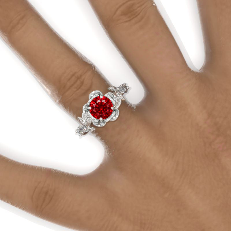 1.5 Carat Round Ruby Floral Halo Engagement Ring - Giliarto