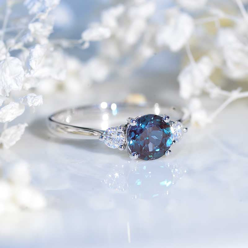 The default design option features 6.5 mm Ethically LAB-Grown Alexandrite Stones Center Stone