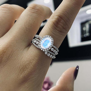 1.5Ct Genuine Moonstone Halo Engagement Vintage Ring, Oval Shape Cut G - Giliarto