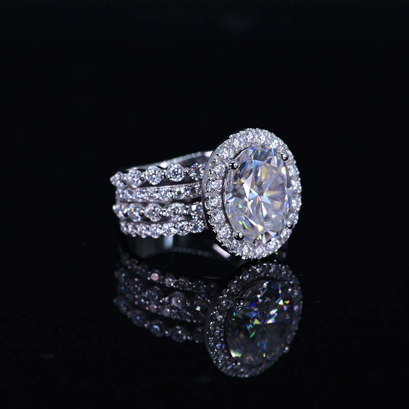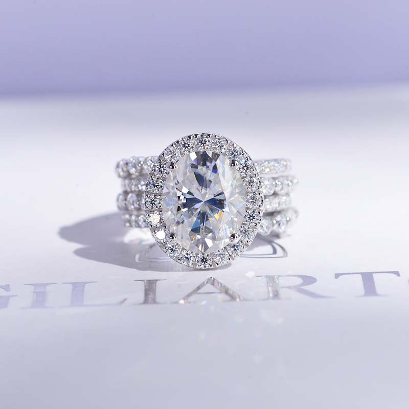 The default design option features 1.5 Carat - 8x6mm Oval Cut Moissanite stonesD-Colorless, VVS1-Clarity, VG-Cut, Ex-Polish, VG-Symmetry Set with 1.5TCW D- Moissanite Accents