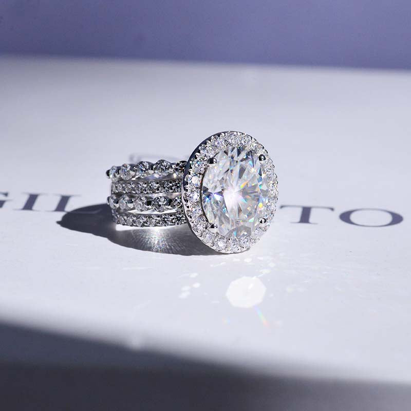 1.5Ct Moissanite Halo Engagement Vintage Ring, Oval Shape Cut Moissani - Giliarto