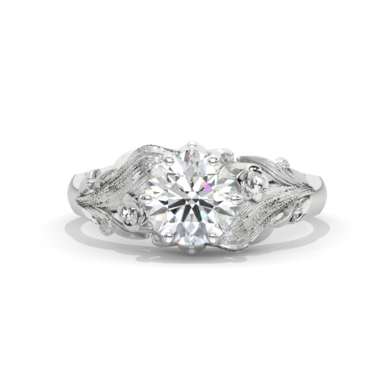 Approximately 1.7+ carat LAB-Grown Diamond center stone (round 7mm, D-Colorless, VVS1-Clarity, Ex-Cut, Ex-Polish, VG-Symmetry) with 14K white gold.