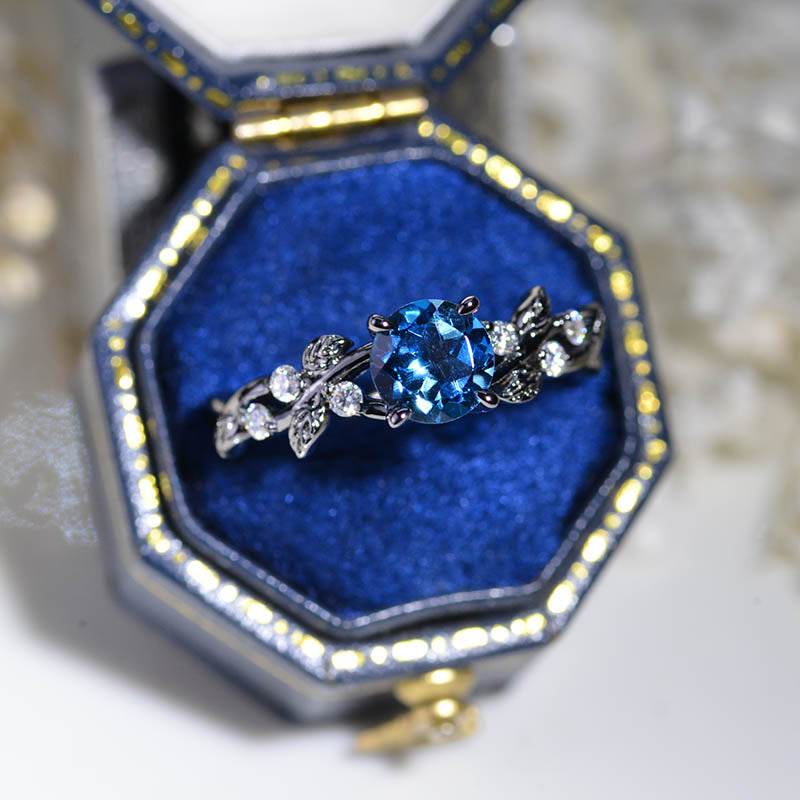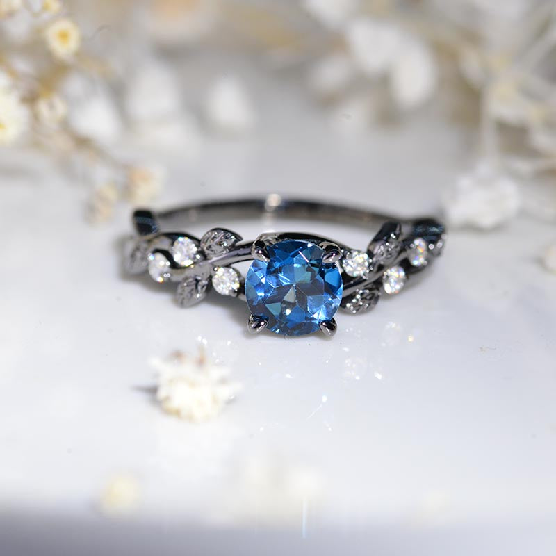 1.7 Carat Round Kashim Passion Topaz Floral Black Gold Engagement Ring - Giliarto