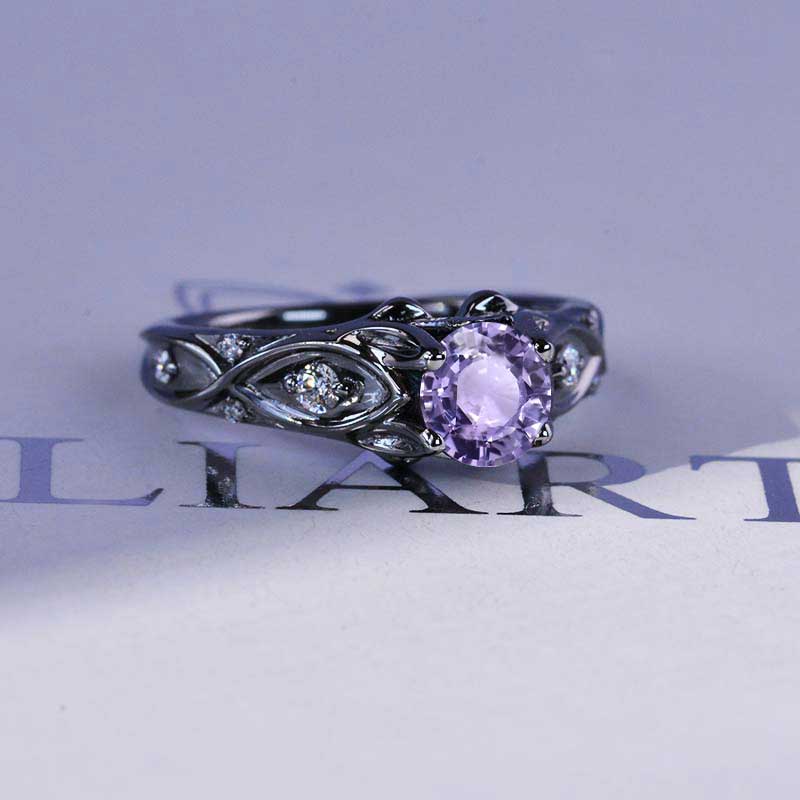 1 Carat 14K Black Gold Purple Sapphire Celtic Engagement Ring