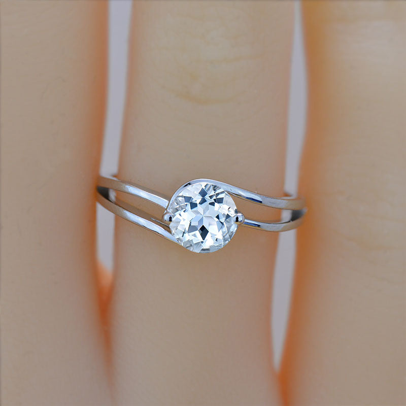 1 Carat Giliarto Genuine Natural Aquamarine Center Stones Clarity: 6.5mm Round, Shape: Round, VG-Symmetry  in 14K White  Gold.