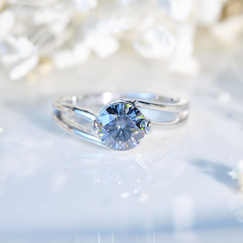 Approximately 1 Carat Giliarto Gray Moissanite Center Stones Clarity: 6.5mm Round, VVS1, Gray-Color Shape: Round, VG-Symmetry in 14K White Gold.
